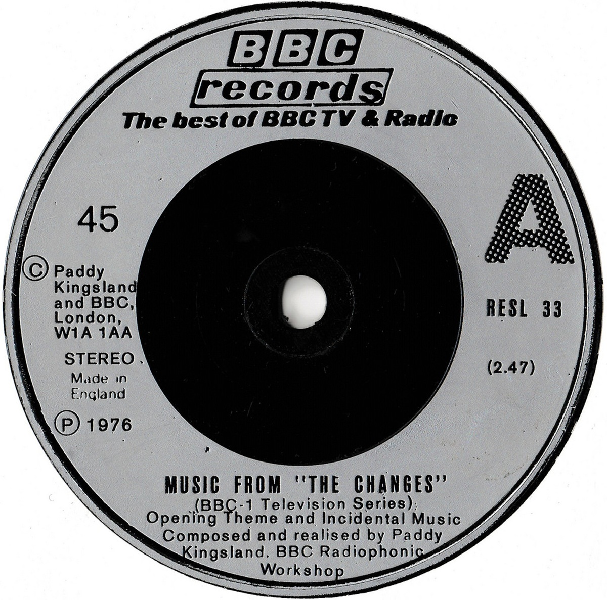 Like many of the other selections on Music From BBC Children’s Programmes, which combined extracts from multiple album tracks and single sides to create something with more musical punch, this was actually a judicious editing down of an earlier EP of Music From “The Changes” released by the label, which had featured several pieces of incidental music alongside the opening and closing themes. It was this shorter edit that appeared on BBC Radiophonic Workshop – A Retrospective, and battered copies of the original EP – which of course sold in small quantities primarily to youngsters – have more recently started to change hands for increasingly ridiculous sums. They’ll probably all calm down a bit now, as the complete score – brilliantly remastered as always by Mark Ayres – is being released by Silva Screen; initially as a Record Store Day vinyl exclusive, with CD and download versions to follow. Given that I’ve always hoped for a CD version of even just the EP, and bearing in mind the effort it took to find a copy in the first place, and that – well – it ‘means a great deal to me’, I probably won’t be joining the queues, but good luck to you if you are and you find a copy. I think you might just enjoy it.