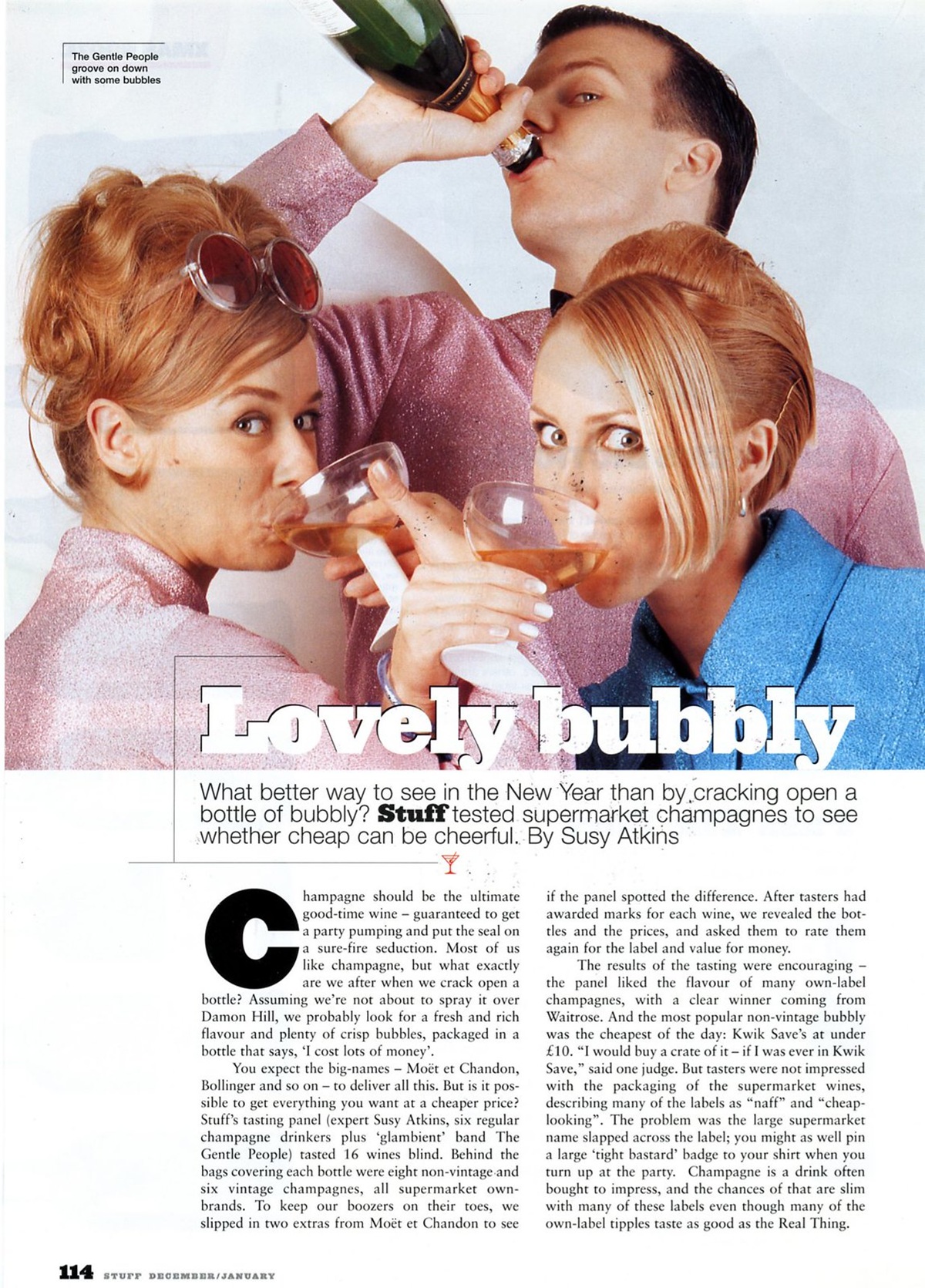 In fairness, the latter sort of magazine might well have been drawn towards The Gentle People by the fact that they had two attractive female members – though it’s difficult to convince people these days that Loaded was actually a pretty good magazine for the first couple of years, placing articles on the likes of Peter Cook and Lancelot Link Secret Chimp in amongst all the Nicola Charles In Her Pants Again stuff, and heavily championing the likes of The League Of Gentlemen and Super Furry Animals way before they actually got anywhere, and that it was only finally consumed by the monster it accidentally created after Harry Hill featured on the last regular male-only cover in 1997 (although as I briefly appeared in a feature in Loaded some two years after that – no, not telling you which, sorry – I can’t really fingerwag as much as I’d like to), but that’s an argument for another time – yet all the same there’s no getting away from the fact that they weren’t the sort of band that would have been considered potential mainstream fodder only a couple of years earlier, or indeed only a couple of years later. They were, after all, a gaggle of flourescently-dyed-in-the-wool confirmed retroheads like the similar Space Age Space Cadets behind Radio Tip Top – themselves a regular sighting in the same sort of unlikely avenues, and similarly pushed towards the mainstream to the extent that they nearly landed a daytime show on Radio 1 (and if you want to know more about that, you’ll have to read my book Fun At One, which boasts a Tip Top interview with The Ginger Prince himself) – and hardly of a piece with bacon sandwiches, football tribalism or children’s television presenter ‘babes’.