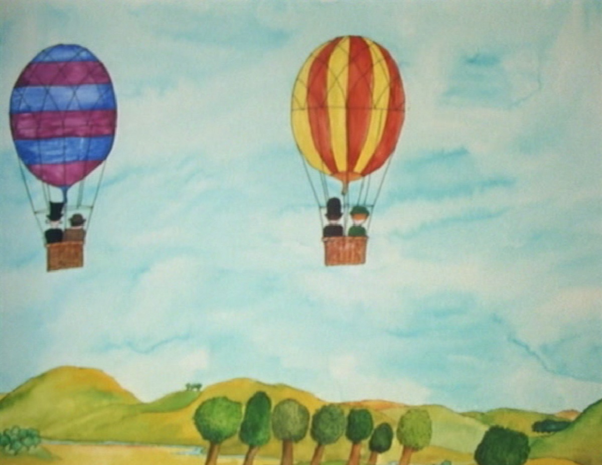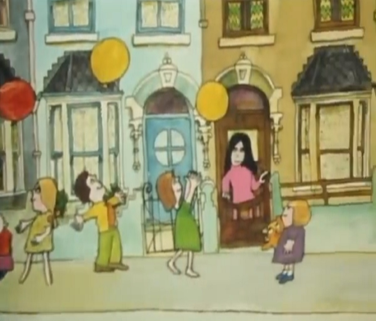 There then follows possibly the most extraordinary eighty three seconds ever broadcast in the name of animated entertainment for very young viewers. As the balloons – and a flock of serenely smiling birds – drift dreamily across the screen, and Ray Brooks’ narration dissolves into a series of tranquil meditations on the sensation of gliding through the clouds and observing the ground below, a trumpet, flute, stand-up bass, vibraphone and soft brush drumkit shimmer out a hazy jazzy melody that perfectly underscores the hazy philosophical musings. Then everything bar the drumming drops out and leaves a Vox Continental organ to wander through its own variation on the melody, before everything else comes back in with a delayed swagger that really does sound as though the music has caught a sudden gust of wind. It’s worth stressing that eighty three second duration, incidentally, as so profound is the change of pace and tone that the entire sequence almost seems to drift free of time and it’s a fair bet that anyone who remembers it was under the impression that it actually lasted considerably longer. Or shorter. It’s one of those situations where it’s impossible to really tell.