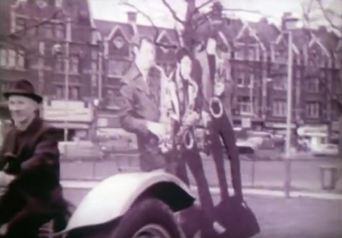 You can watch the entire performance below, and it really is much wilder than it’s actually possible to make it sound. It begins with cardboard cutouts of the band being carried through the streets and lowered into the venue, where they promptly transform into the actual musicians in full flow, and while they thunder through their numbers including spirited renditions of The Magic Garden and Original Peter, we are also treated to wrestling, acrobatics, trampoline acts, puppet shows, hallucinogenically-lit fire-eating, live painting and tattooing, film montages satirically juxtaposing Richard Nixon and Edward Heath with Victorian dancers, pet food cans and The Woodentops, and lifesize playing cards doing lord alone knows what, and of course some of that fabled hand-balancing. Apparently, when she was shown the film recently, Norma Winstone had to confess to having absolutely no recollection of it whatsoever. It must have been quite an evening.