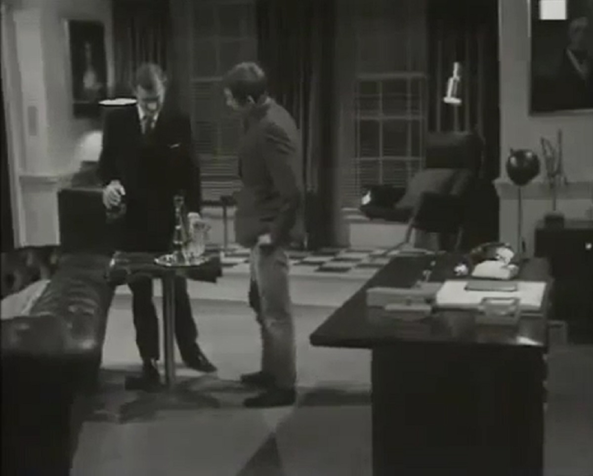 The episode begins with Hadleigh meeting with local Lord Lieutenant Sir George Withy, who is keen for him to follow in the family footsteps and become a Justice Of The Peace. They are looking, it transpires, for someone who can talk to young offenders in their own language, particularly following an incident the previous week in which a “young bastard” – yes, they really do say that – raided a sweetshop, jostled the elderly female proprietor, and in his most hideous and indefensible action “laughed in old Crawford’s face” when sentenced. Initially reluctant, Hadleigh has been just about talked into it when they are interrupted by some bland and generic-sounding library music issuing from the next room. “What’s that extraordinary noise?”, asks Sir George as he gets up to leave. A pop record from 1964, by the sound of it.