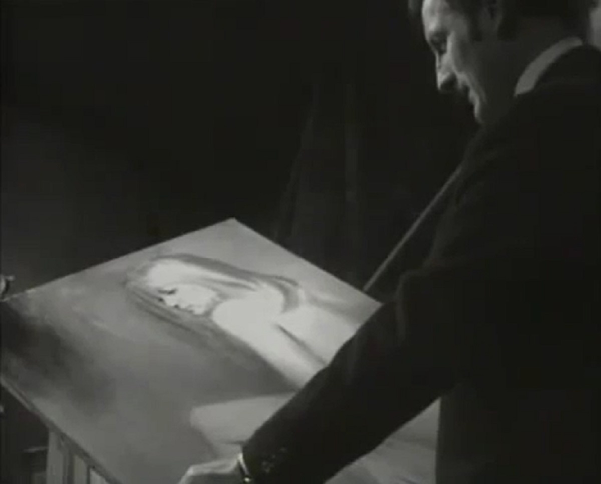 Not nearly as frank as the scene that follows it, in which we see Crispin hard at work in his studio, painting a nude study of a surprisingly-revealed-for-1969 Lolly. She’s not happy when he makes her turn off more of her blasted ‘pop’ music, and even less happy still when he relates his blackmail plot, retorting that her employer is a nice man and is being treated unfairly, and anyway, didn’t Crispin go to one of them posh schools himself? This makes him ever so slightly furious, though his temper is subdued by, in turn, Lolly booting him in the knackers and an unexpected ring on the doorbell. Despite momentary panic that it might be the police, it turns out to be – surprise surprise – Hadleigh. He’s got the money but has deducted fifteen quid for the briefcase. “I said not more than ten”, snarls Crispin. “Well, what’s a fiver between connoisseurs?”.