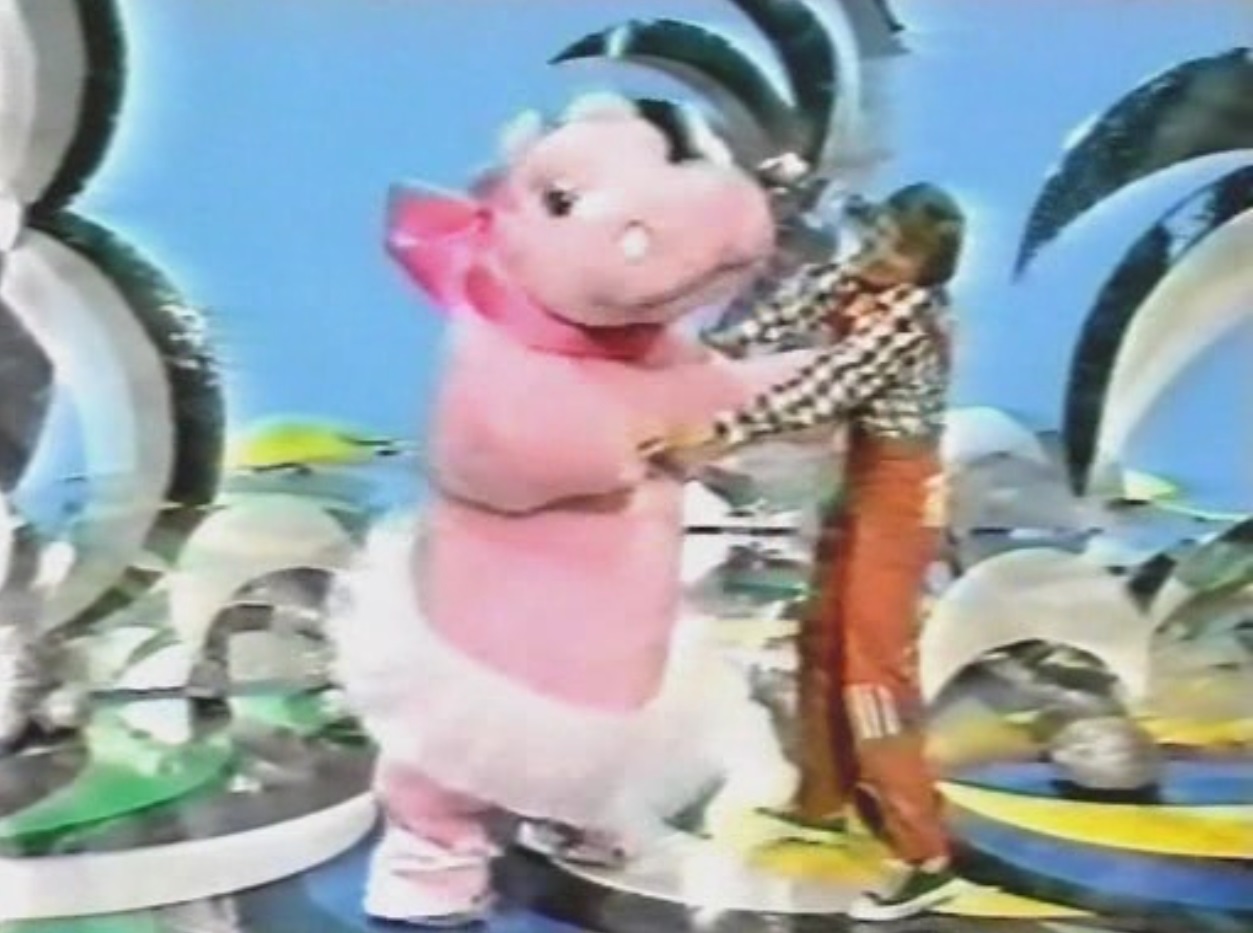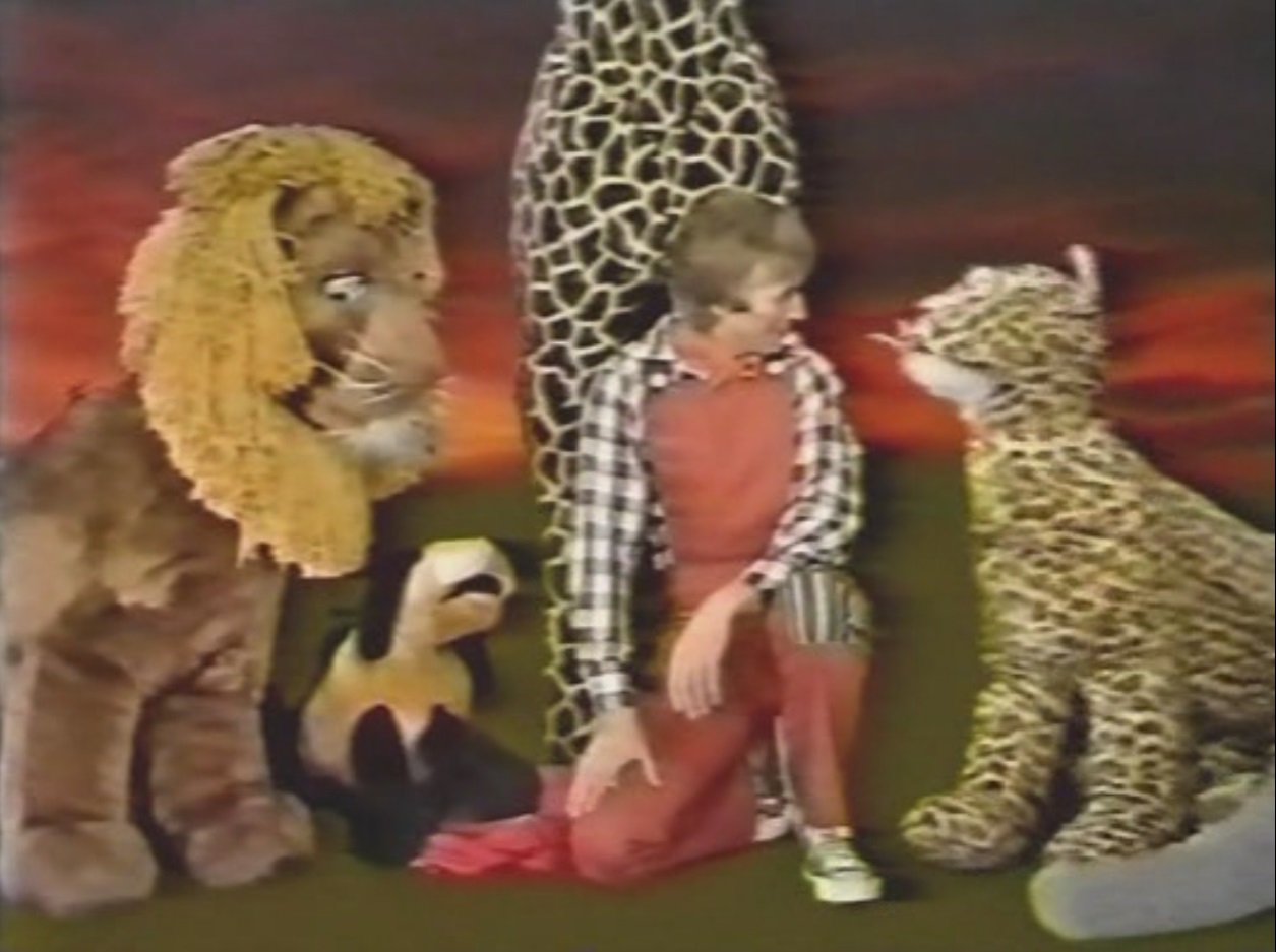 The Witch is clearly quite happy with this state of affairs, as back in the corridor, we see the expected shadow and hear the expected cackle as she uses one of her lightning flashes to throw a pile of boxes down the stairs and into Quincy’s path. He’s on the verge of throwing in the towel when a song about the ability to do whatever you put your mind to starts blaring out from nowhere, inspiring him to fashion a grappling hook from a nearby needle and thread. He uses this to ascend to the top of the stairwell, shouting echoey updates on his progress to the Rejects as he goes. After all of this exertion, he needs a bit of a rest, and wakes up after a quick nap to find himself surrounded by an assortment of Top Cat-voiced stuffed animals. These include an ostrich, an elephant, an alarmingly threadbare lion, a leopard who keeps asking to ‘eat’ him, and a large pink hippo who in no way whatsoever resembles George from fellow Thames production Rainbow. After somewhat unfairly berating them for acting like ‘a pack of animals’ in front of a complete stranger and updating them on the fortunes of their Reject pal Cedric The Camel, Quincy gets them to join him in a song and dance number about how wonderful he is, and then wanders off, leaving the leopard to wonder aloud again why they can’t eat him. Not an unreasonable question in the circumstances.