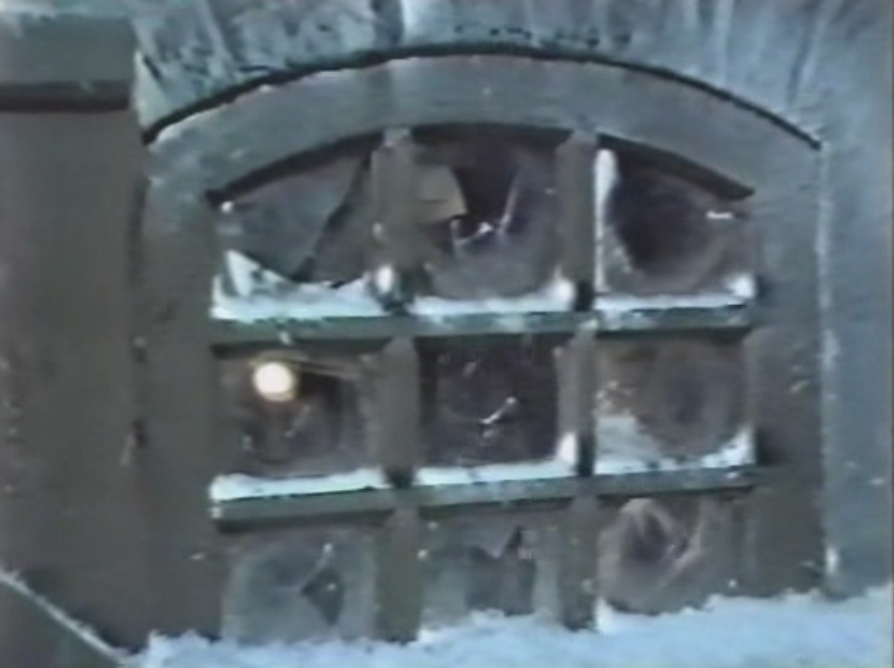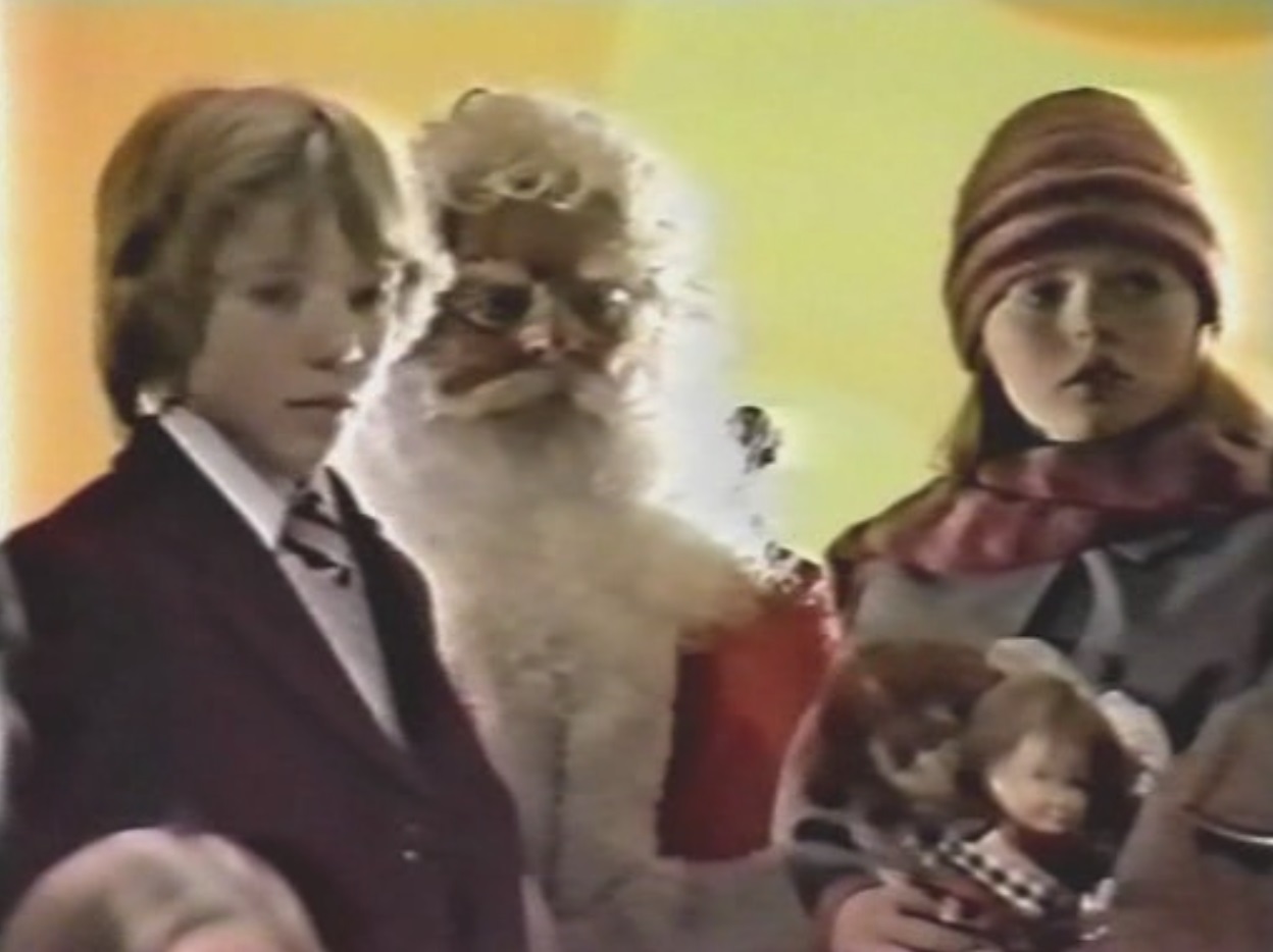 An ominous shadow and an equally ominous blast of music suggest that The Witch has returned to exact revenge on the now inanimate dolls, but it’s actually Santa, who picks them up with a kindly expression and a jaunty musical quote from Good King Wenceslas. At that moment, a voluble horde of kids stampede into the grotto, and a young Patsy Kensit asks Santa if she can have Quincy and Rebecca. A pompous store manager tries to prevent her from taking them on the basis that Rejects are bad for ‘branding’, upon which he is deftly booted in the shin by one enterprising youngster and they all race off to the basement. The Rejects are seconds away from being loaded into the store furnace – complete with garish seventies studio videotape flames – when the kids thunder in, wallop the janitor and race off into the snow bearing imperfect toys, leaving Smithy bewildered but delighted. Back at the Grotto, Santa tells Quincy and Rebecca that he’d like to keep them “to remind all those children with broken toys about love and understanding” – however that would work on a practical level – and that’s Quincy’s Quest.