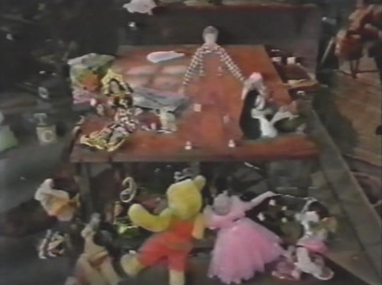 At the end of the first corridor, Quincy comes to a door marked ‘Costume Dolls’ – so it wasn’t a slapdash opening titles juxtaposition, then – and ventures inside to the accompaniment of ‘thriller’-type music and witchy cackles. Presumably a ‘d’ had somehow fallen off the end of the word ‘Costume’ in both locations at once, as he finds himself in a room full of dolls done up as powdered wig fops, pierrots, Quality Street box illustrations and so forth, none of whom are even remotely pleased to find themselves in the company of a Reject. Indeed, they reinforce this point by singing a haughty little song about how perfect they are (“superior, superior, not one of us inferior”). Quincy, as is his wont, proudly declares that “my wear and tear’s unthinkable, I’m splittable and shrinkable”, but while he’s busy wasting time skipping about, untoward things are happening out in the corridor…