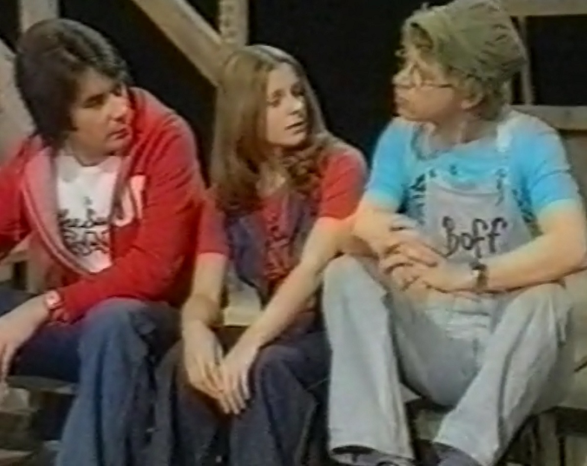 The gang’s lineup would shuffle a couple of times over the programme’s run – clocking up an impressive sixty eight instalments between 1976 and 1981 – but the most enduring featured John Dryden as fresh-faced trainee teacher type J.D., Glen Stuart as ‘zany’ – i.e. his glasses were at an angle – inventor Boff, Jill Shakespeare as hard-of-thinking country bumpkin who had to have every parable explained to her twice Dodo, and Tina Heath as gobby cockney loudmouth and friend’s-girlfriend’s-best-mate-who-everyone-thinks-you-should-‘get-together’-with incarnate Teena; it’s not entirely clear who voiced Mackintosh and in all honesty, it’s probably best left that way. The rowdy cast-belted theme song’s declaration of intention towards “taking a trip through God’s creation” pretty much said it all about the show’s combination of post-Godspell trendiness-fuelled consideration of ‘issues’ and hastily commissioned watercolour-accompanied readings of Daniel In The Lion’s Den and so forth, though where the accompanying dance that somehow involved “knocking on doors, opening windows, up and down and round” fitted into all this is anyone’s guess.