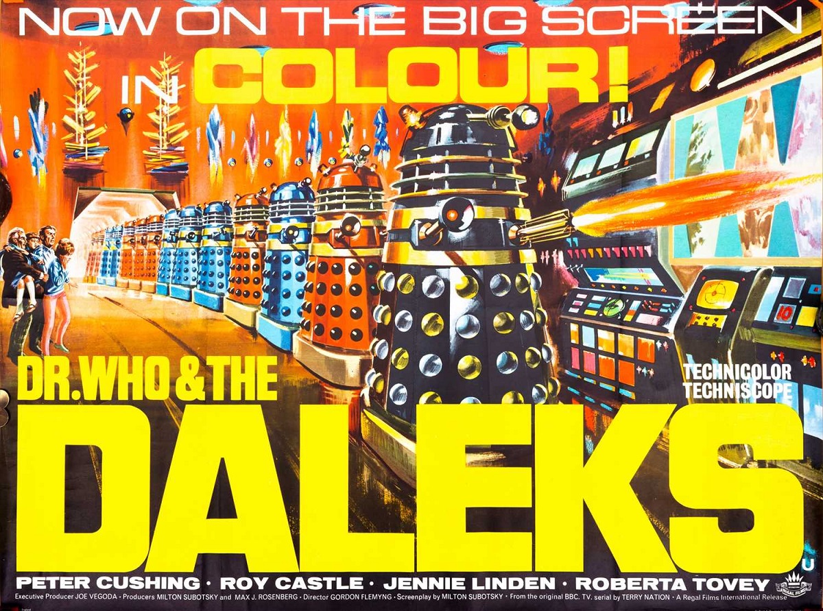 It was pretty much par four the course that any halfway popular UK television show of the fifties and sixties would inspire its own big-screen spinoff, and Doctor Who was no exception, inspiring feature films based on the first two Dalek stories that upped the production values, threw in a dazzling amount of colour, and recast Doctor Who as an eccentric human scientist played by Peter Cushing who just happened to have invented a time machine in his back yard. Starting with 1965’s Dr. Who And The Daleks – which this is the main theme from – the Dalek movies come in for a lot of very unfair stick now but let’s be fair, whatever your position on them they are at least better than The Rings Of Akhaten. There were quite a few singles based on the hugely successful in their time movies, in fact, including one by Roberta Tovey in character as Susan, featuring a b-side with lyrics that are frankly better glossed over now. Incidentally, this actually is called The Eccentric Dr. Who – Daleks And Thals, as I just mistakenly announced it as on air, is the title of the pretty much identical b-side. You probably won’t be enormously surprised to discover that there is a huge feature on the Dalek movies in Not On Your Telly, available in paperback here or from the Kindle Store here.