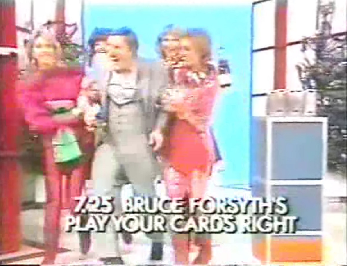 You can find both of Cliff’s performances online, but in some ways A Christmas Lantern remains as distant and elusive as ever. Even though the entire show still exists in full, and is also the sort of one-off oddity that usually inspired viewers – not to mention obsessive Cliff Richard fans – to make and retain their own off-air recordings, only six non-Cliff seconds of A Christmas Lantern have actually found their way online anywhere. This almost literal blink and you’ll miss it fragment forms part of a preview of Christmas On ITV highlights for viewers in the Central region, and to be honest you could have forgiven anyone with the misfortune to live in the vicinity of the Lichfield transmitter for not expecting much in the way of raucous seasonal jollity and paper hat-askew goodwill. Following an at least halfway effort-making animation of the Star Of Bethlehem turning into the Christmas On ITV logo rendered in ye olde frozen waterre, it opens with a trailer for the Christmas Special of riotous hit game show Punchlines! – a show that hinged around comedians running about the set and swapping places with such speed and regularity that the contestants needed genuine skill and attentiveness to remember which ones had which halves of which joke – featuring presenter Lennie Bennett against a plain black backdrop mutedly promising “an even more festive than usual Punchlines!” with the same degree of exuberance as someone discussing their approach directing to Czechoslovakian theatre on a BBC2 arts show. While it was no doubt business as usual on the Christmas Punchlines! itself, even a hurtling Barry Cryer would have had trouble lifting the audience after that lead-in.