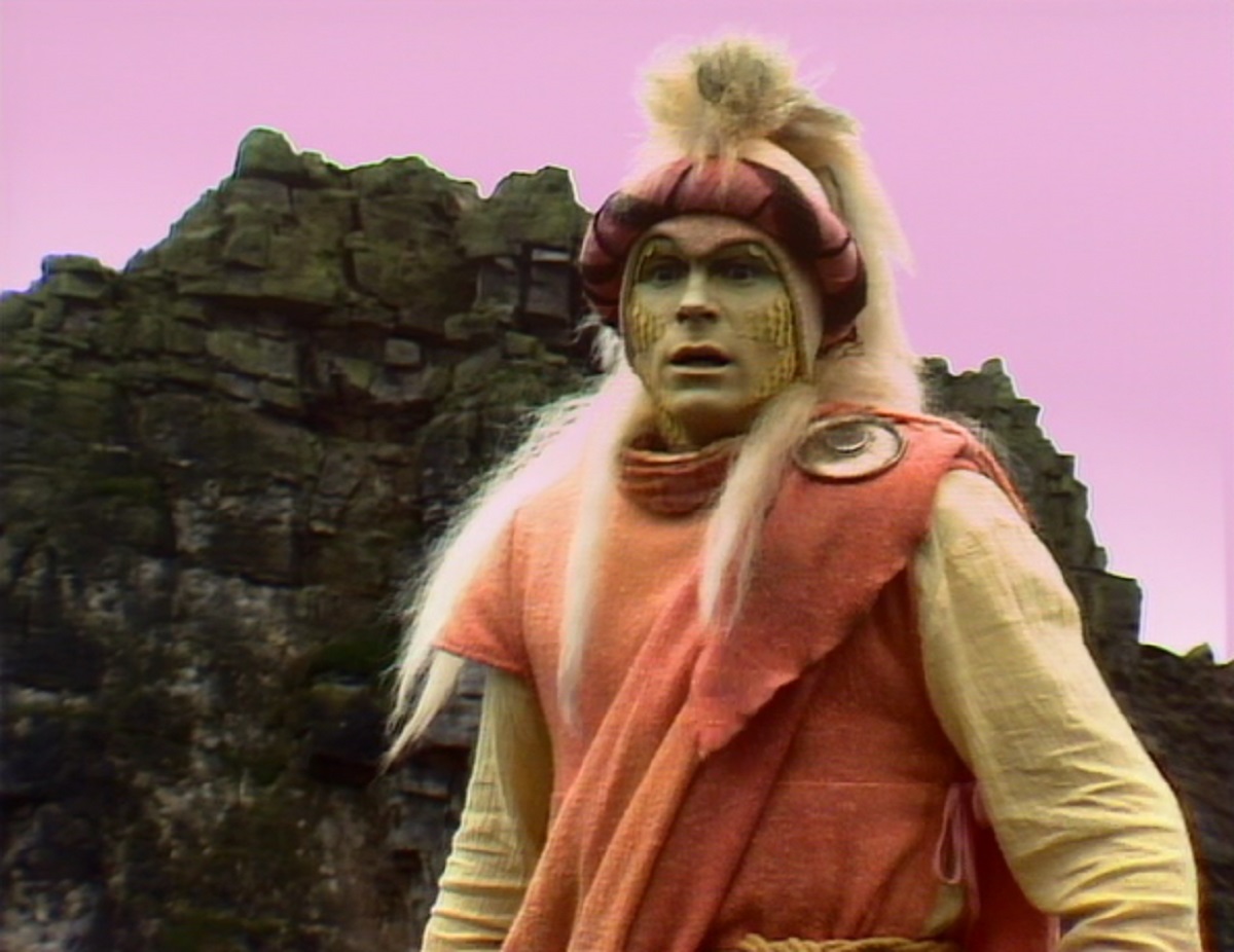 Even in this opening episode, you’ll find an overwhelming barrage of impressive – or at the very least vivid – visuals that present a substantial challenge to the widely held belief that latterday Doctor Who looked cheap, nasty and unconvincing. The computer-aided video effects are meticulously rendered and way ahead of their time, especially the spinning globe traps; the ‘Tetrap’s Eye View’ camera effect adds a nice bit of variety to what would otherwise be rather staid and repetitive scenes, the model work is of a consistently high standard -have a look at the exterior shots of the Rani’s lab cut into a cliff face if you want evidence of this – the Lakertyans’ make-up is far better than the average alien ‘prosthetics’ of the day – well, at least by BBC sci-fi standards – and even the clearly budget-conscious costumes manage to come across as at the very least eyecatching. Where it falls down, unfortunately, is in the sheer cheapness of the studio sets, although at least they’re cheap as in sparse rather than the painted backdrops and rubber walls of legend. Even the quarry standing in for alien planet Lakertya – in lieu of Pip and Jane Baker’s favoured tree-strewn vista – somehow manages to avoid looking quite as boring and unconvincing as usual, although a subtle amount of digital tweaking probably had some bearing on this.