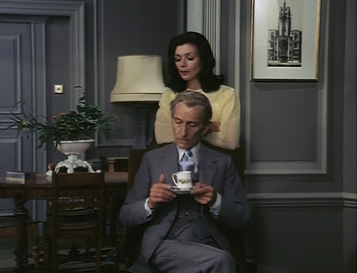 Fortunately, that all changes when the quartet arrive at The Leopard’s cafe Les Pecheurs – ‘The Fishmermen’ – and outline their plan to use les faux billets to pay for l’or de contrebande, joking that ‘we ought to be ashamed of ourselves’. Meanwhile the two denim blokes are being tailed by a police motorcyclist who they seem to know about already, and elect to casually throw him off course with a bike-incapacitating warning shot in a sequence that, fittingly, has all the drama of Sherbet doing Howzat on Top Of The Pops. At a small gathering that local magistrate Judge Gautier – Peter Cushing – is hosting to toast his wife Brigitte – Jacqueline Pearce – Lieutenant Georges Roget who handily happens to also be The Leopard’s son is informed of this turn of events and announces he has to leave the function early, occasioning a suspicious glance from one of the mysteriously also present smugglers. Over at the drop-off point, the denims are unexpectedly met by The Tiger, who spends a conspicuously episode-filling length of time weighing the gold before they ask him ‘bit long in the tooth for all this, grandad?’, at which point you cannot help but notice that there is still disconcertingly little in the way of actual consequential dialogue.