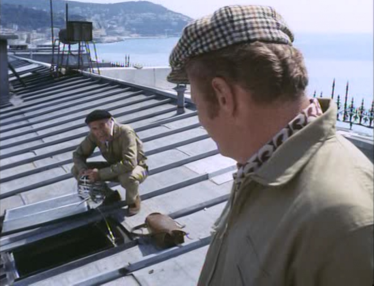 Under interrogation- and doubtless thinking back to somewhat hairier wartime encounters – The Tiger cunningly attempts to prove his non-involvement by carefully stating selected facts, replying with confounding honesty that he didn’t know the denims and that he just likes to keep the place clean; meanwhile the others are plotting to secure his release by fair means or foul, and this is where the episode really takes off. To a background of newsstands decrying the discovery of a counterfeiting ring, The Leopard arrives at the police station in a cursory disguise in an attempt to persuade her son to help her secure his release by subterfuge. When she can’t provide a convincing explanation for why he was at the villa posing as an American tourist, Lieutenant Roget risks being sent to bed before Trente Millions d’Amis by suggesting she should try talking Judge Gautier into allowing her to visit the suspect instead. Over at his not particularly humble residence, The Leopard effortlessly charms Brigitte while waiting for his worship to return and agree to The Tiger’s release without charge, before spotting a forged franc and growing suspicious. She’s not the only one – the smugglers have seen the hysterical headlines and realised that they’ve been duped, and acting on a well-placed insider tipoff, they manage to track down The Fox and hold him hostage. Realising that the game is at least partway up, The Leopard offers Gautier an uneasy bargain – in exchange for the safe return of her grumpy colleague, she will allow the couple to make off with the gold and a guaranteed twenty four hour head start. Seemingly placated, he agrees to this and suggests that the exchange should take place at his villa at eight o’clock that night. Belief beggaringly assuming that he can double-cross four veterans who drove the actual literal Nazis out of Europe, Gautier inevitably turns up with the armed smugglers and without The Fox – but back at the yacht, the celebrants-too-soon find The Fox untied and The Elephant and The Tiger lying in wait. He won’t be requiring that twenty four hours head start then.
