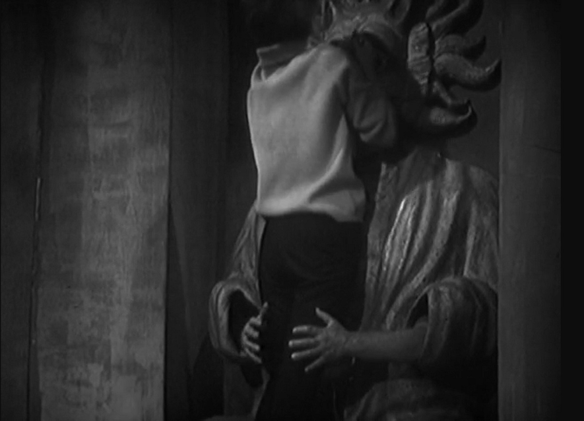 According to the average columnist blabbering on about how it’s OK to like it now except somehow it also isn’t at the same time, until Russell T. Davies took over Doctor Who was amongst the most problematically sexist creations in the entirety of popular culture, although apparently also it still was at the same time after he took over too except it wasn’t but also it was. Back in the bad old days, so popular perception has it, Doctor Who was nothing more than ‘the man’ dashing around solving all of the problems and getting all of the glory, with ‘the girl’ left to stand in the background looking pretty, screaming a bit and handing things to him when required. There are, we have to be frank, certain parts of Doctor Who‘s history where this is arguably a legitimate criticism, but the first two series are not amongst them. At this point, it’s worth remembering, Doctor Who had a strident young female producer and a fifty percent female regular cast, and if the Bechdel Test is your particular preferred method of measuring equity-related worth then the overwhelming majority of those nigh on a hundred episodes pass it with ease; if you’re interested, you can listen to me discussing this in much greater detail here. Even above and beyond that, Susan and Barbara will often take the lead in a storyline, facing off against Daleks, ritual historical violence and even the laws of time on their own terms, and encountering all manner of well drawn and sympathetically portrayed female characters en route. Even their less Bechdel-passing conversations are still noteworthy for a television show made in the early sixties, particularly their dealings with the numerous other ladies they meet during The Keys Of Marinus and Susan’s celebrated chat with Ping Cho about her status and expectations in Thirteenth Century China. Most notably of all, there’s a lengthy scene in which Barbara and Susan reflect with some weariness on the male characters’ attitude towards them, which is unfortunately undermined when, almost immediately afterwards, a statue grabs Barbara’s arse.