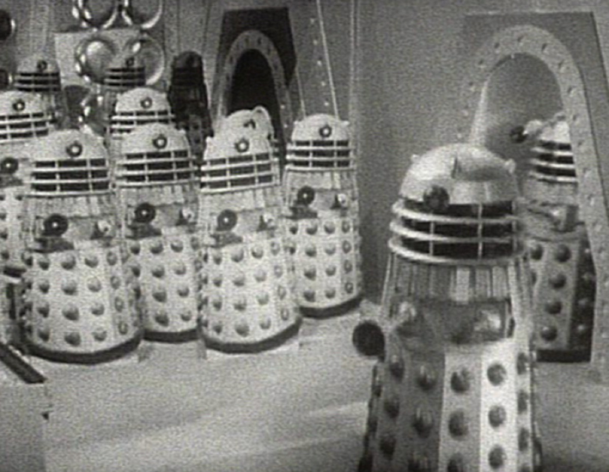 Incidentally, you may have noticed that there have been no further additions on this occasion to the ongoing They Like Big Butts And They Cannot Lie saga, as previously, erm, checked out in series two here and the Dalek movies here. This is purely because so much of this series is missing that it’s proved pretty much impossible to find any examples, although it’s a fair bet that the booty-crazy cameramen would have been falling over themselves to get to the rear of the majorettes in The Macra Terror…