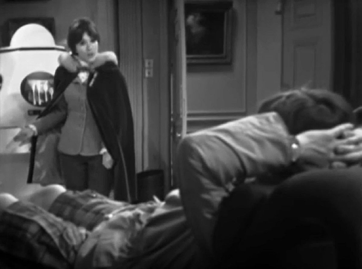In the previous instalments, we’ve had plenty to say on the black and white era cameramen’s pervy fixation with focusing in on female cast members with sizeable backsides. Presumably this was as much as the hot and bothered gentlemen felt that they could reasonably get away with at the time, but this would all dramatically change with the arrival of Deborah Watling as Victoria. She was, lest we forget, the first assistant that the production team explicitly stated was there to get ‘The Dads’ watching, and presumably in a complete and fortunate coincidence brought with her a frankly unignorable frontage. Although plunging necklines were still some distance away from acceptability, the costume designers nonetheless went out of their way to stick her in tight dresses and sweaters; the effect that this had on ‘The Dads’ doesn’t bear thinking about. There’s even a couple of lines that are delivered in a manner that suggest the rest of the cast are having a bit of knocker-heavy innuendo amusement with the entirely innocent script, not to mention someone more or less telling her that her tits are ‘getting in the way’ in The Tomb Of The Cybermen. Meanwhile, the fact that Victoria could only have been supposed to be fifteen at most is probably best sidestepped for now. Anyway, the long and short of it is that that the cameramen were seemingly in competition with each other to pan and tilt for the best angle on the thankfully very much overage Ms. Watling, although certain shots do suggest that old habits really did die hard…