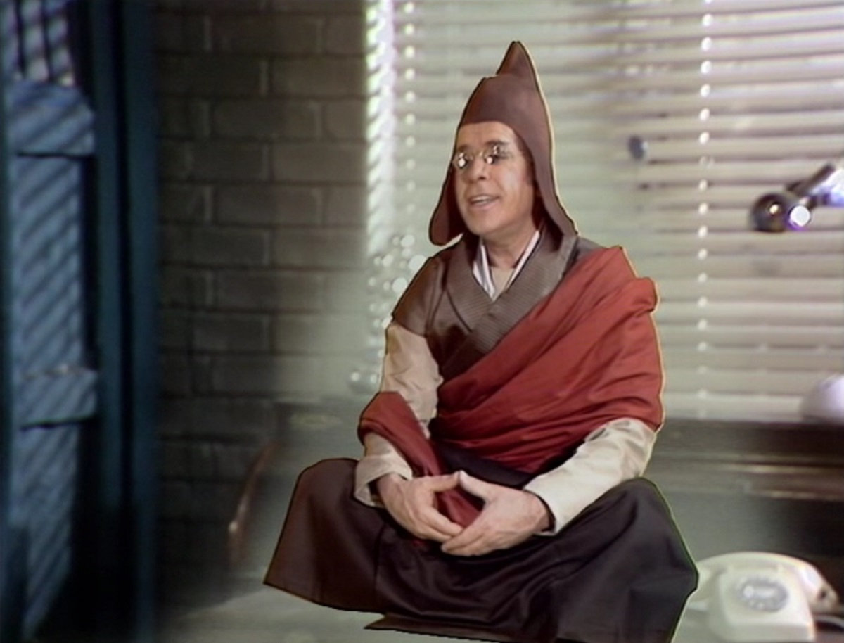 As deadlines, investments and some contractual ill-advisedness with that berk who later decided he was the ‘Seventh Python’ loomed late in 1973, ‘Monty Python’s Second Film’ as it was then officially titled – and let’s be honest, they almost certainly actually considered calling it that – was still essentially a formless and tenuously-themed collection of largely unfilmable open-ended sort of quasi-sketches nobody had quite thought through, the bulk of which would wind up forming the bulk of the unfairly overlooked fourth series of Monty Python’s Flying Circus the following year. Thankfully, by the time the final draft of the screenplay was delivered on 20th March 1974, they’d realised that there was a little more to those meandering bits and pieces about King Arthur and the Knights Of The Round Table, and Monty Python And The Holy Grail was on the alarmingly unstable rope bridge to its star-studded premiere at the Classic Theatre, Silbury Hill. During this time, it gained a celebrated and much-imitated albeit usually with the least funny lines sequence in which Graham Chapman does battle with John Cleese’s impassable ‘Black Knight’, slowly but consistently depriving him of all his limbs in the face of his utter refusal to concede defeat and cease fighting. Meanwhile, between 15th December 1973 and 5th January 1974, The Time Warrior introduced viewers to an unstoppable robot knight built by Linx for Irongron, thrusting and parrying relentlessly into battle with not even a procession of well-aimed airborne missives from Hal The Archer capable of impeding its progress. Obviously there is no suggestion that the two are in any way related, although it is worth noting that Michael Palin’s diaries are conspicuously empty for more or less the entire duration of The Time Warrior, save for a round-up at the end of December in which he reveals that he has been too preoccupied to keep up with it due to – conveniently enough – the pressure of work on the final draft script of Monty Python And The Holy Grail. Maybe the pair of them should just call it a draw. Anyway, this was also the point at which Monty Python And The Holy Grail gained its brilliantly hilarious opening credits, though you can find much more about them here. Mind you, not all comedy in 1973 was quite so progressive and subversive…