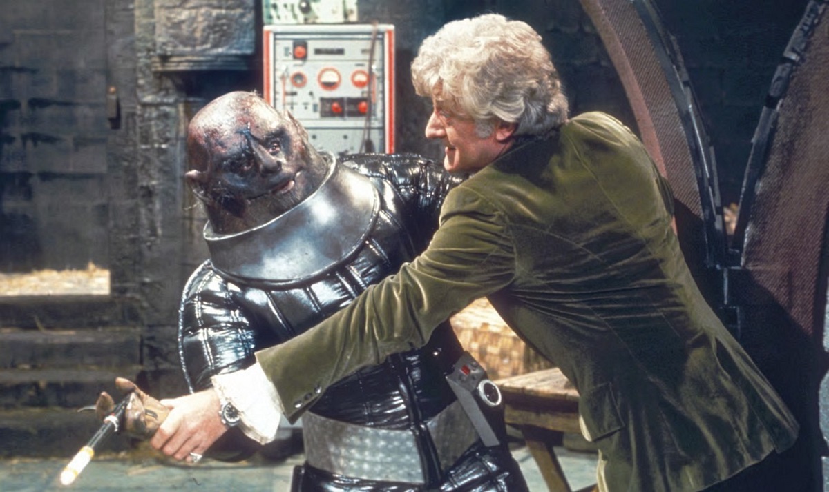 With the Doctor-trebling festivities of Doctor Who‘s tenth anniversary – which you can find a good deal more about here – over and done with, it should have been straight back to Dudley Simpson-soundtracked business as usual for everyone concerned. Instead – and perhaps inevitably – the mood as the eleventh series approached late in 1973 was a slightly more sobering one, and not just because all of the balloons and streamers and bizarre photoshoots for the Radio Times Doctor Who Tenth Anniversary Special had been packed neatly away in the same way that the original master tapes of Frontier In Space hadn’t. Just as Jon Pertwee’s tenure had begun with an unexpected confluence of enthusiastic, positive and forward-looking influences, what would turn out to be his last series in the role was heralded by a somewhat more muted and introspective – and indeed retrospective – disposition as Doctor Who prepared to enter its second decade on air. Katy Manning’s departure had finally broken up the fondly-recalled cast and crew ‘family’, the tragic news about Roger Delgado – which curtailed plans for a climactic showdown between The Doctor and The Master – had depleted everyone’s enthusiasm and willingness to continue, and Barry Letts and Terrance Dicks not only felt that it was time to start phasing out U.N.I.T from the show but also shared a personal need to move on to fresh creative challenges; in fairness, anyone who has seen their ferociously realistic 1973 depiction of imagined life in a lunar research facility Moonbase 3 will be able to attest to how much they evidently enjoyed heaping an almighty challenge onto themselves. All of this combined with what was arguably a changing internal atmosphere at the BBC, which had long since left the novelty of all-new colour broadcasting behind and was increasingly fixated on the very much Moonbase 3-aligned practicalities and mundanities of paperwork, and even more arguably the experience of working with Patrick Troughton and William Hartnell whose differing post-Doctor Who career experiences can hardly exactly have put a spring in his step, contributed in no small degree towards Jon Pertwee’s decision to move on from the role that he was more or less indivisible from to the general viewing public.