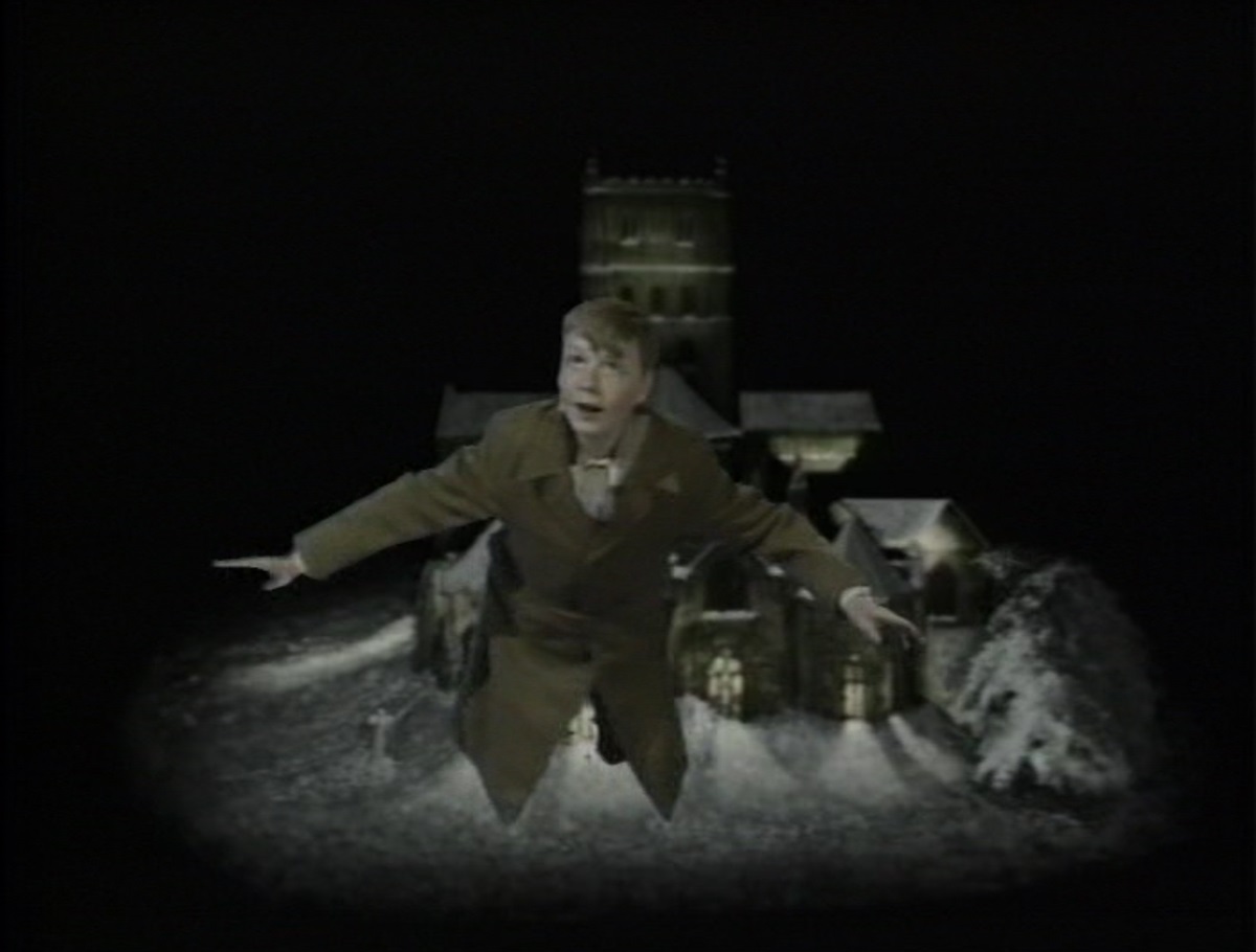 It is probably fair to describe the original trailer for The Box Of Delights – and that shot of a suitably delighted Patrick Troughton extolling the virtues of the box in particular – as having been more or less inescapable in the weeks leading up to that cold winter night in November 1984. However, it wasn’t just the inter-programme continuity persistently pushing The Box Of Delights; plenty of magazine shows ran politely enthusiastic preview features as well, and when they did, they would always reach for the exact same clip – Kay ‘flying’, admittedly in an impressively rendered manner, through the pages of an assortment of illustrated history books in his bid to travel through time and locate Arnold Of Todi. Doubtless this assertion would be very heavily challenged from a present day retrospective position, but there is one harsh and inescapable detail of the decision to use this sequence to represent the entire series that cannot have escaped the attention of any of its intended audience at the time – it gave entirely the wrong idea about The Box Of Delights. Shorn of context and removed from the surreal setup with Herne ruminating on how “the past is a great book, with many pages” and the ensuing heavily stylised trip into history, it just looked like a boy in formal clothing flying through a selection of notably outdated and therefore ‘boring’ school text books, and flying with a cloyingly twee air of gleeful wonder at that. Seen in isolation, it appeared exactly as you might expect from a Children’s BBC that was still presenting the day’s schedules on a slide showing an orderly ensemble of genteel youngsters in their Sunday best wielding old-fashioned dolls and toy trains and gazing with rapt admiration at Blue Peter Flies The World well into the early eighties. Putting it bluntly, it did not exactly look like Seaview.