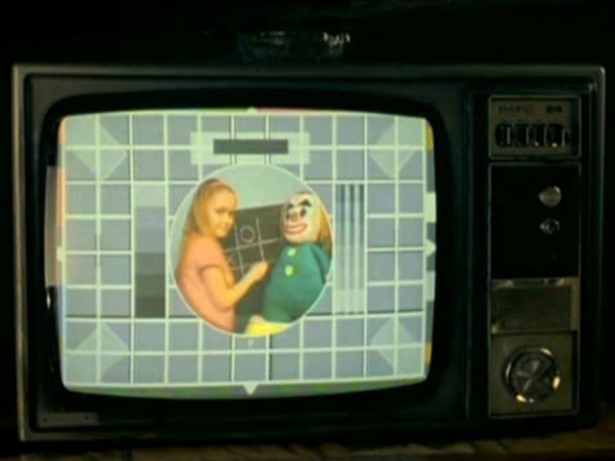 Inevitably, Test Card F’s ubiquity and impenetrability meant that it would also become a popular target for satirists and parodists, albeit with one bafflingly recurrent gag-sabotaging issue – astonishingly for an image that was there for reference more or less at literally any hour of the day, none of them could ever seem to get ‘Clown’ right. The otherwise savagely and devastatingly accurate children’s ITV television parody sketch show End Of Part One, for example, lowered its batting average a little by not even bothering to mock up a vague approximation of Bubbles, opting instead for a nondescript doll attached to some balloons that would probably have made it rather difficult to get a game of noughts and crosses underway. No wonder Fred Harris looked alarmed. It was no lobster on a Coronation Street rooftop, put it that way. Similarly, Spitting Image undermined their renown for cruelly caricatured attention to detail in their latex lampoonery by recasting ‘Clown’ with a huge spherical head and a disproportionate frame-hogging body in a sketch involving him having to go on ‘strike’ because he is football hooligan and Nicholas Witchell has to come on instead or something…? Yeah, stitch that, ‘The Two Davids’. Nick Hancock and Neil Mullarkey’s celebrated ‘TV Themes’ routine, as seen in the middle bit of practically every single chat show in the second half of the eighties to speaker-rattling audience hysteria, saw them rapidly changing costumes and frantically flinging around props whilst a medley of small-screen signature tunes played in the background, taking in everything from standing on a chair dancing behind cardboard flames to sausage on a fork and shooting up shenanigans. This even incorporated a quick Test Card F gag to the tune of a tuneless instrumental reading of All My Loving, denoted by Hancock reaching for the nearest available ‘clown’ wig and Mullarkey not really much bothering to be honest although he did accurately capture ‘Girl’s tie; the LWT-seated audience, however, shrieked with laughter regardless. But what if Ben Kingsley, Test Card F Parody Union is behind door? Granada Rentals attempted to shore up their declining television set leaseholding customer base in the late eighties with an advertising campaign that not only got the launch date of Test Card F wildly incorrect but also stretched to the vast expense of substituting ‘Clown’ with a teddy bear, because they are the same thing obviously aren’t they. Most notoriously, the chalky combatants also made recurring appearances in Life On Mars, adding to Sam Tyler’s sense of time travelling unease by emerging from the television to remonstrate with him about not ‘aving ‘oops; an effect that was only moderately undermined by ‘Clown’ having apparently expanded by eighteen inches in every direction.
