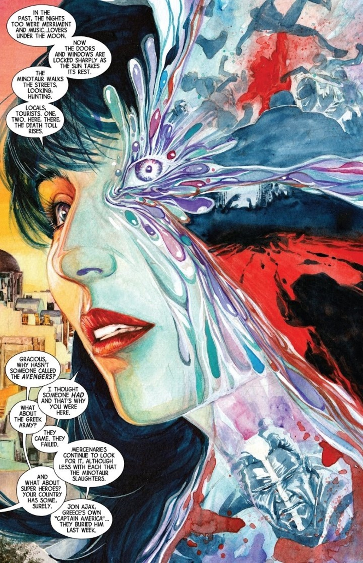 Originally published in 2016, Scarlet Witch: Witches’ Road isn’t actually the series that Agatha All Along was primarily based on, and those who are coming in to it from the small screen may find a couple of surprising differences in the narrative; in particular Wanda is at the height of what can only be described as her Big Divorced Energy era, whilst Agatha is currently without an actual corporeal form and is not in a hurry to allow her sister in magic forget it. They are currently making their way across Europe – or rather the parts of it that back on to entrance and exit points from the Witches’ Road – on the trail of some suspiciously exaggeratedly ‘Irish’ disturbances in the actual force of witchcraft itself, and Wanda is cagily wary, although equally suspiciously reluctant to discuss it, about who they might encounter on their way. The storyline proceeds in the time-honoured Marvel ‘road movie’ team-up format, and full creative advantage is taken of this with a procession of unanticipated diversions and a constantly shifting art style that appropriates both the religious artwork and cinematic cliches of their various stopoff points.